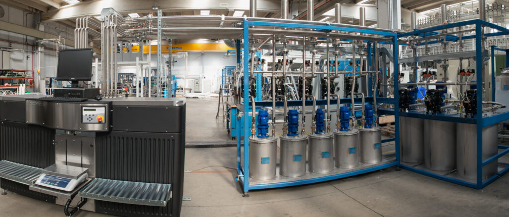 Une productivité, une flexibilité et une précision élevées peuvent être atteintes en combinant la distribution au poids à partir des réservoirs externes et la distribution au volume à partir des circuits internes.